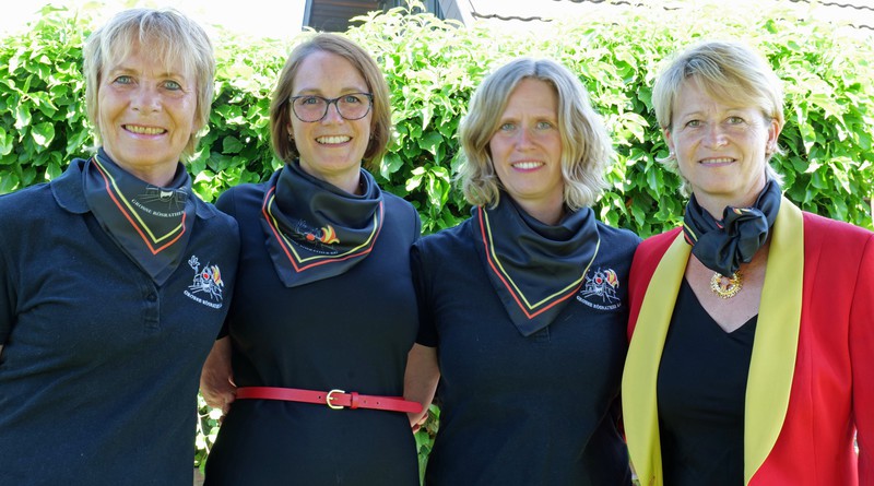 Wer möchte: Halstuch mit Logo (keine Pflicht).